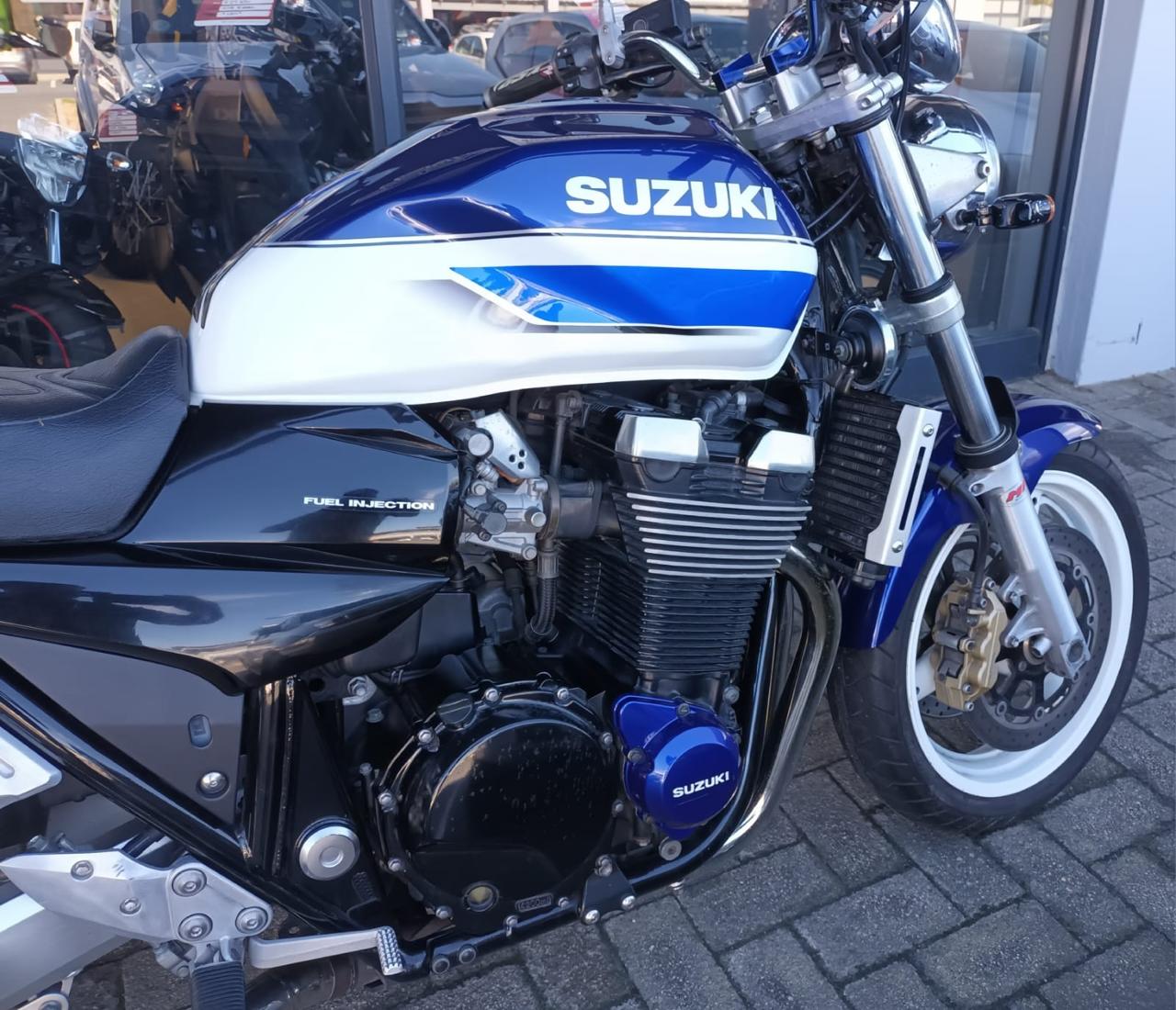 The 2002 Suzuki GSX1400 is a powerful naked bike that blends classic styling with modern performance. Powered by a 1,400cc, four-cylinder engine, it delivers impressive torque and smooth acceleration, making it ideal for both spirited riding and long-distance cruising. The GSX1400 features a muscular design, with a wide handlebar, comfortable ergonomics, and robust suspension for a smooth ride across various road conditions. Whether you're looking for a bike to carve through twisty roads or enjoy leisurely rides, the GSX1400 combines muscle, comfort, and style in one exceptional package.