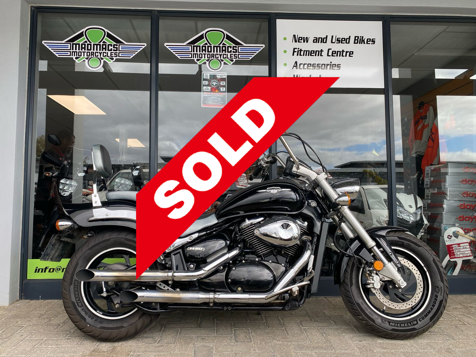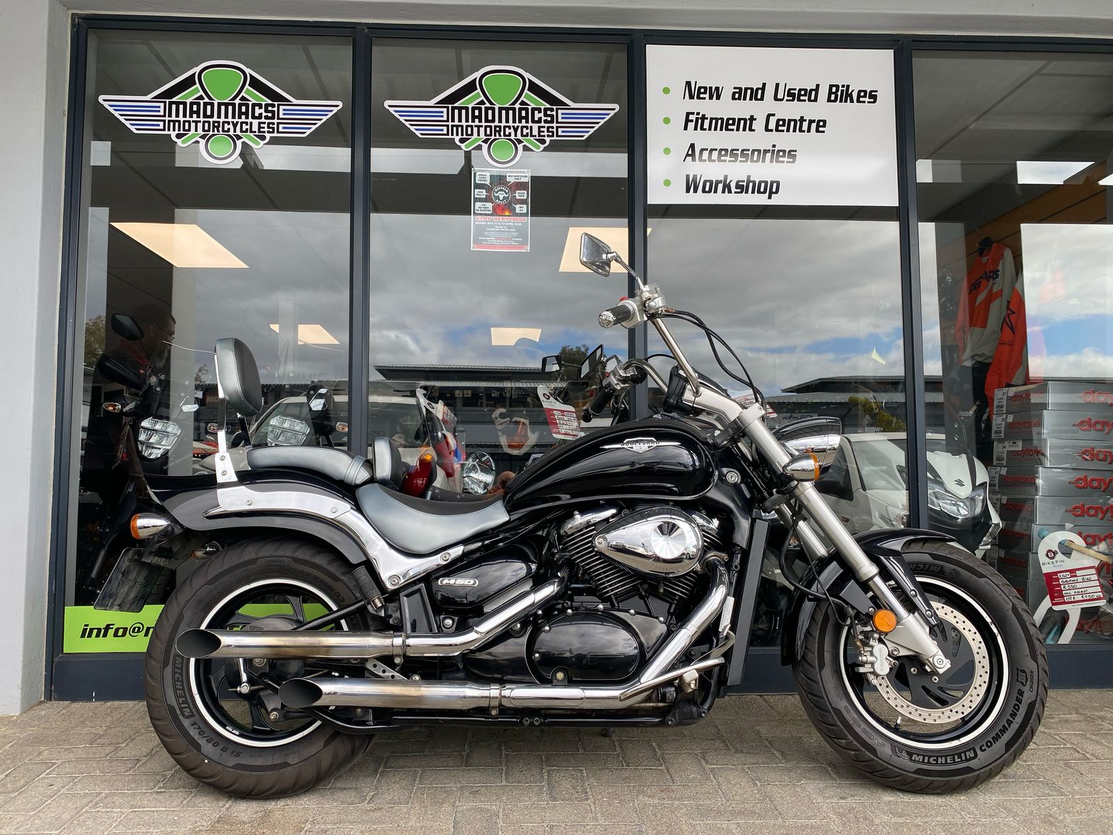 If you're interested in purchasing or servicing a Suzuki Boulevard M50 in the Somerset West area, MadMacs Motorcycles is a reputable dealership and service center. They are an official Suzuki dealership offering a range of new and used motorcycles, accessories, and apparel. Their fully equipped workshop provides services such as modern and classic motorcycle servicing, engine rebuilds, accident repairs, and a fitment center for tire fitting and wheel balancing. They also have a Dynojet Dyno tuning center for all your tuning needs.
